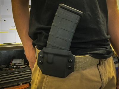 The QVO Tactical AR-15 Mag Carrier is a universal design that allows for a variety of AR15 magazines to be used. Each carrier comes with four points of adjustable retention allowing the user to adjust the carrier to their liking. The user can select between the paddle mounting option and/or the angled belt loop option in order to attach the carrier to their belt. The mag carrier has been designed to allow for rounds to be facing forward or to the rear and is fully ambidextrous. Choose from a variety of colors, textures and camo patterns for your AR15 Mag Carrier.