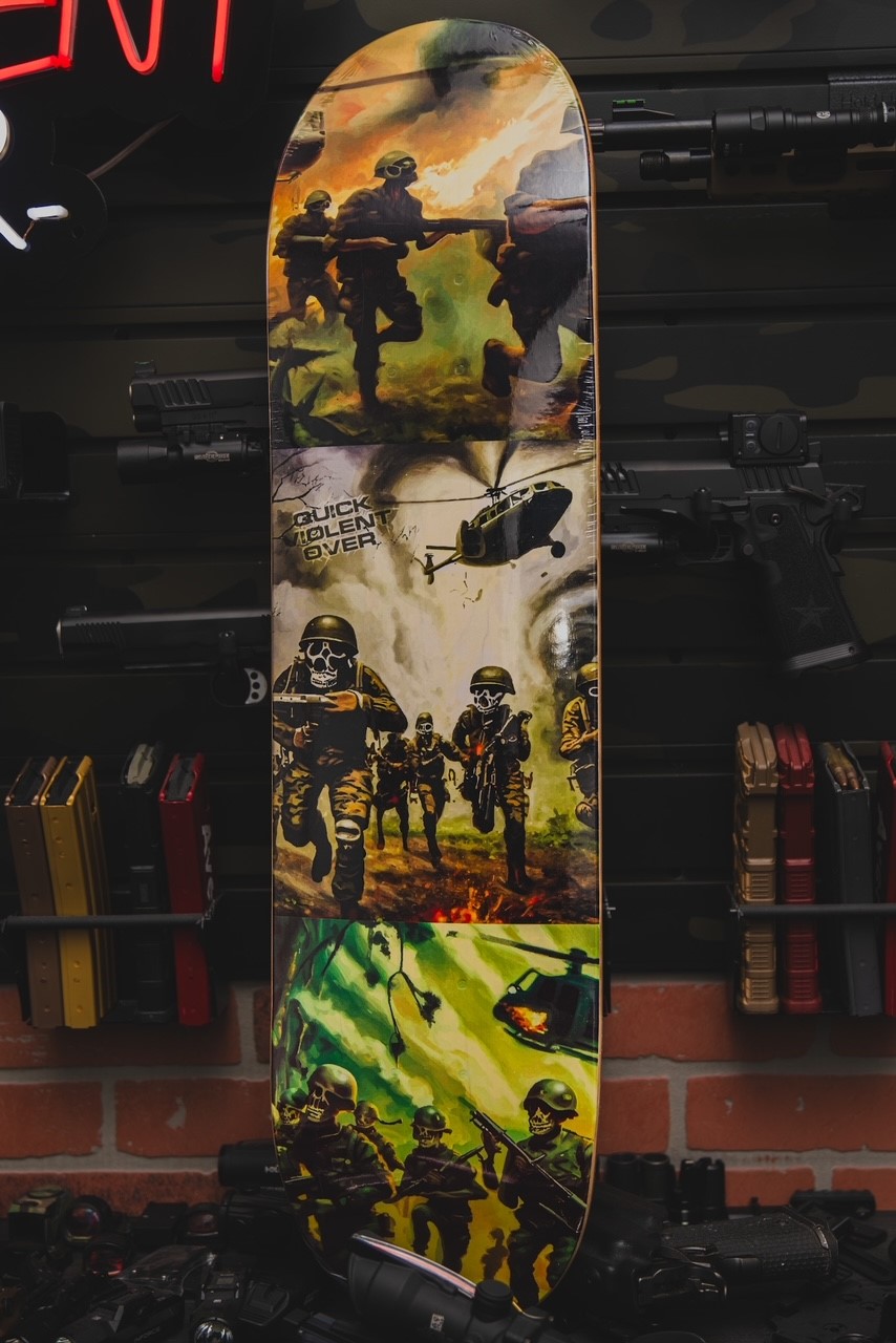 We’ve been working on a new project that hits home for us! Our new custom QVO Tactical Skateboard Decks! We are starting out with a limited run of 5 unique designs all done in house. These decks can be built up and used at your local skate park or hung on the wall for everyone to admire! For all you current and former skaters out there we think you’ll like what we have brought to the table! Hey oh!
